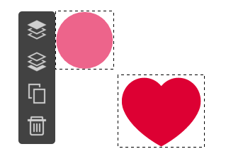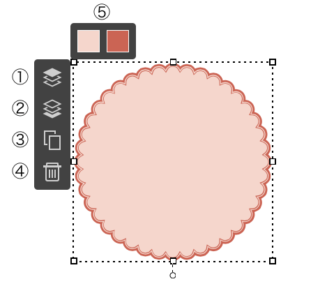 - ① 最前面に配置 – 素材が重なり合う時、選択されている素材を最前面に配置します。