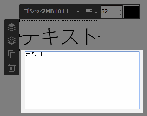文字を編集するには、キャンバス上の「テキスト」をダブルクリックします。入力ウインドウが表示されますので、その中に文字を入力して、[enter] キーを押します。