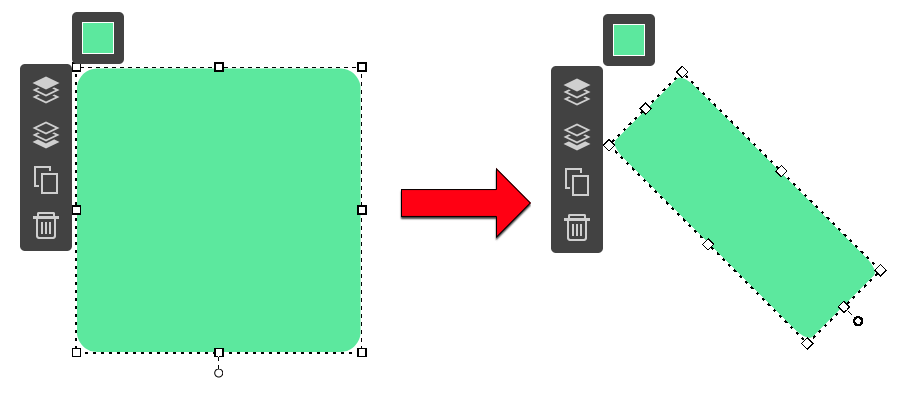 回転ハンドルをドラッグすると、素材を 15°単位で回転できます。また、ドラッグ時に [shift] キーを押すと自由角度の回転になります。